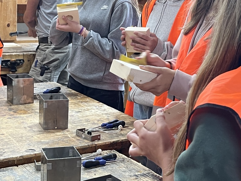 Auch das Ausbildungsteam von Binderholz war mit den Kids im Werk in St. Georgen unterwegs. In der Lehrlingswerkstatt durften die Schüler:innen in den Bereichen Elektrotechnik und Holzverarbeitung ihre Fertigkeiten unter Beweis stellen, indem sie Nachttischlampen bauten. So wurde ein bunter Vormittag gestaltet der allen Spaß bereitete.